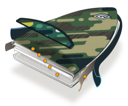 SUP Gladiator Fishing изготовлен из высококачественного двухслойного ПВХ, соединенного по методу ламинации, на текстильной основе плотностью 1000 den. По краям он дополнительно усилен двойным суперпрочным кантом Xstrong edge. Это инновационное решение позволило сделать сап по-настоящему жестким, «литым». Благодаря особой структуре и методу крепления кант и материал доски образуют единое целое.